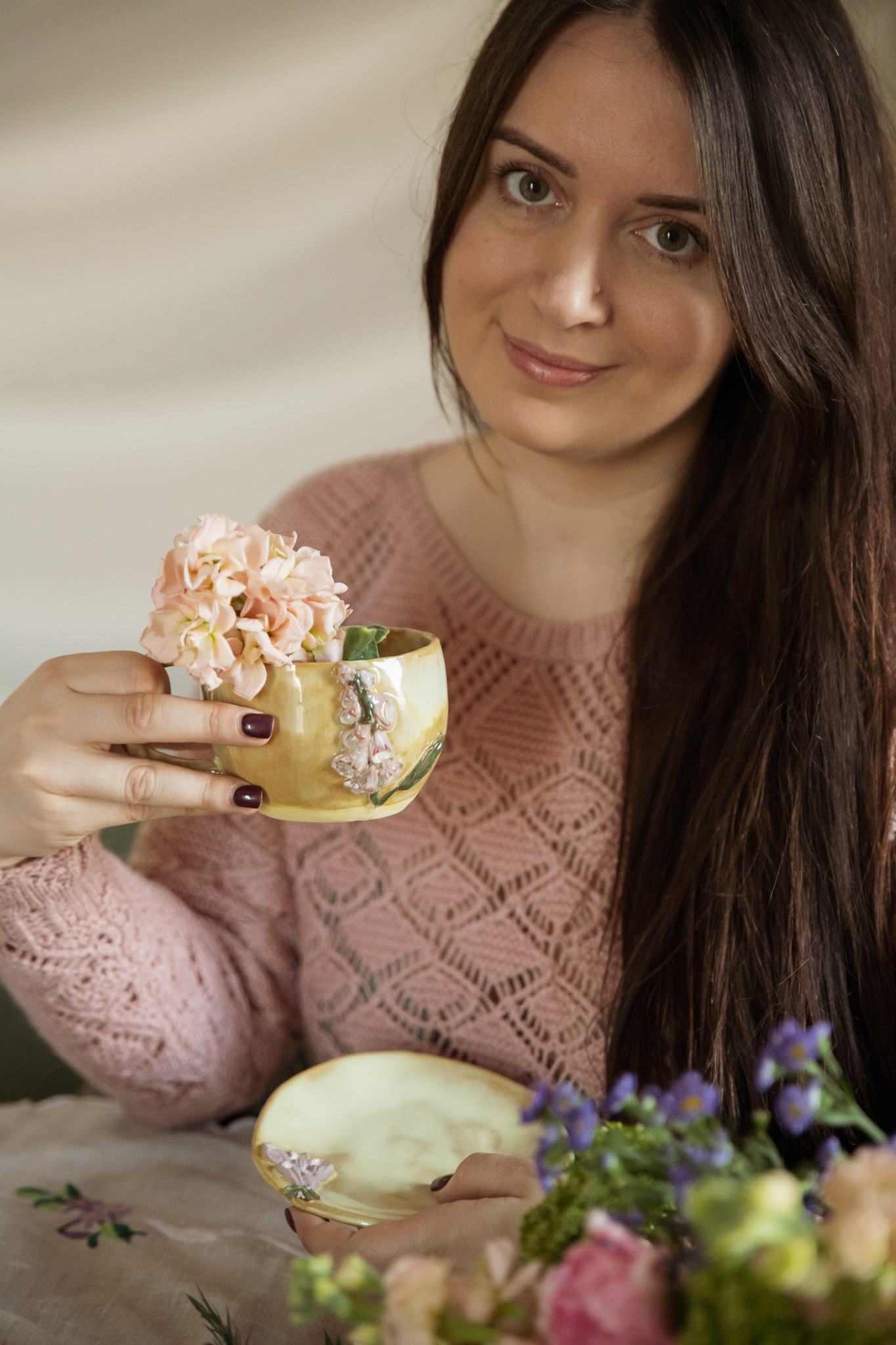 To filiżanka, która przywołuje myśli o długich dniach i pierwszych kwiatach rozchylających się ku światłu. Każdy egzemplarz jest tworzony ręcznie, dlatego nie ma dwóch identycznych. Aby cieszyć się jej pięknem jak najdłużej, zalecamy mycie ręczne.